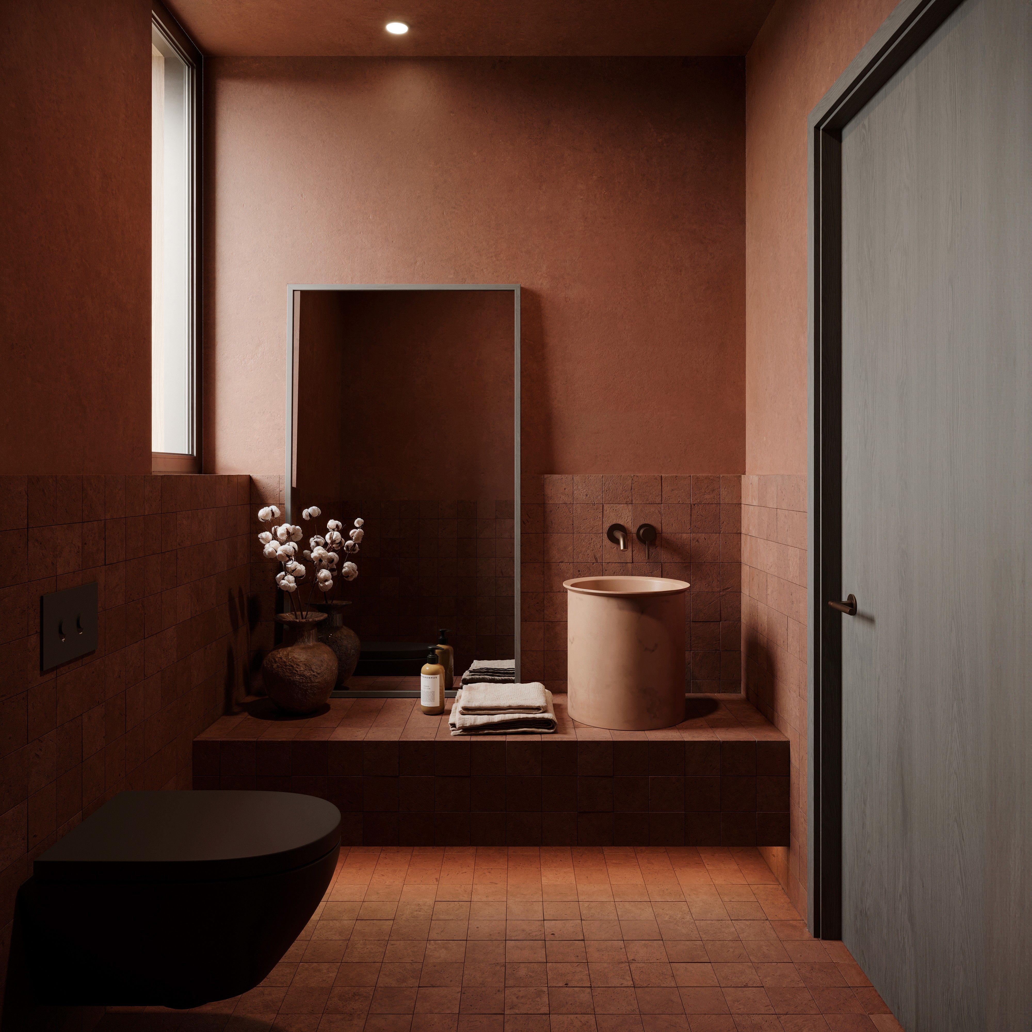 El formigó polit i la pedra fosca evoquen la roca primigènia i la humitat de la terra. Les textures són brutes i poderoses. Aquesta planta és un llenç en blanc: tu decideixes com habitar-la.