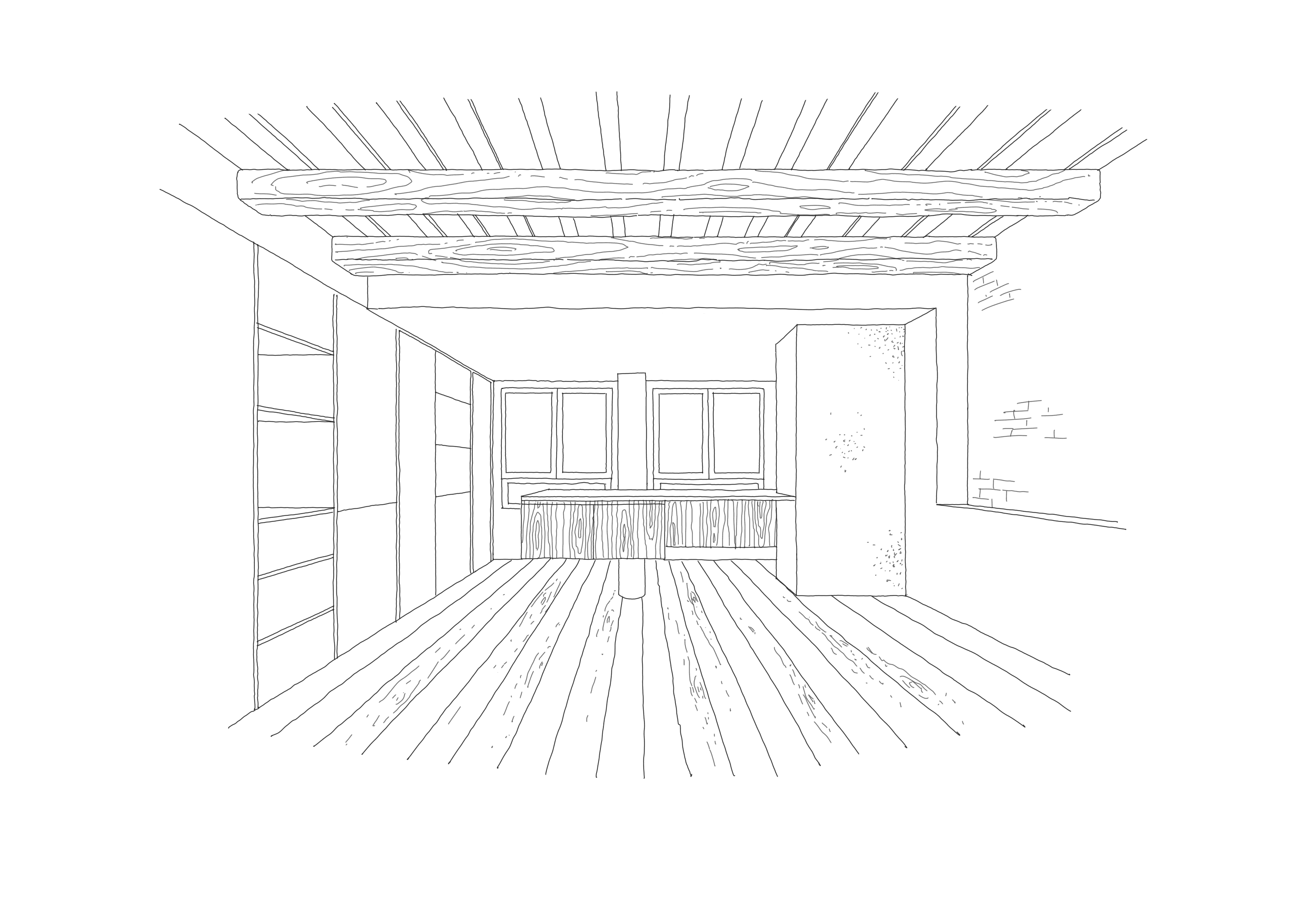 L'Albert volia un habitatge especial, únic i que reflectís la seva manera de viure i d'entendre la llar. En iniciar el projecte ens vam trobar amb un habitatge que havia estat reformat recentment, però de molt baixa qualitat. El nostre primer instint va ser buidar-la i despullar-la, deixant a la vista les textures de maó, la mamposteria i l'entramat de bigues de fusta, amb la bonica sorpresa d'un sostre a dues aigües amb molta personalitat. A l'interior d'aquest espai diàfan, vam dissenyar dos elements clau capaços de donar resposta a tot el programa: una caixa central que conté bany i emmagatzematge; i un element de fusteria continu que va donant servei a les diverses necessitats de l'habitatge: emmagatzematge a l'entrada, escriptori, moble TV, bugaderia i, finalment, cuina.